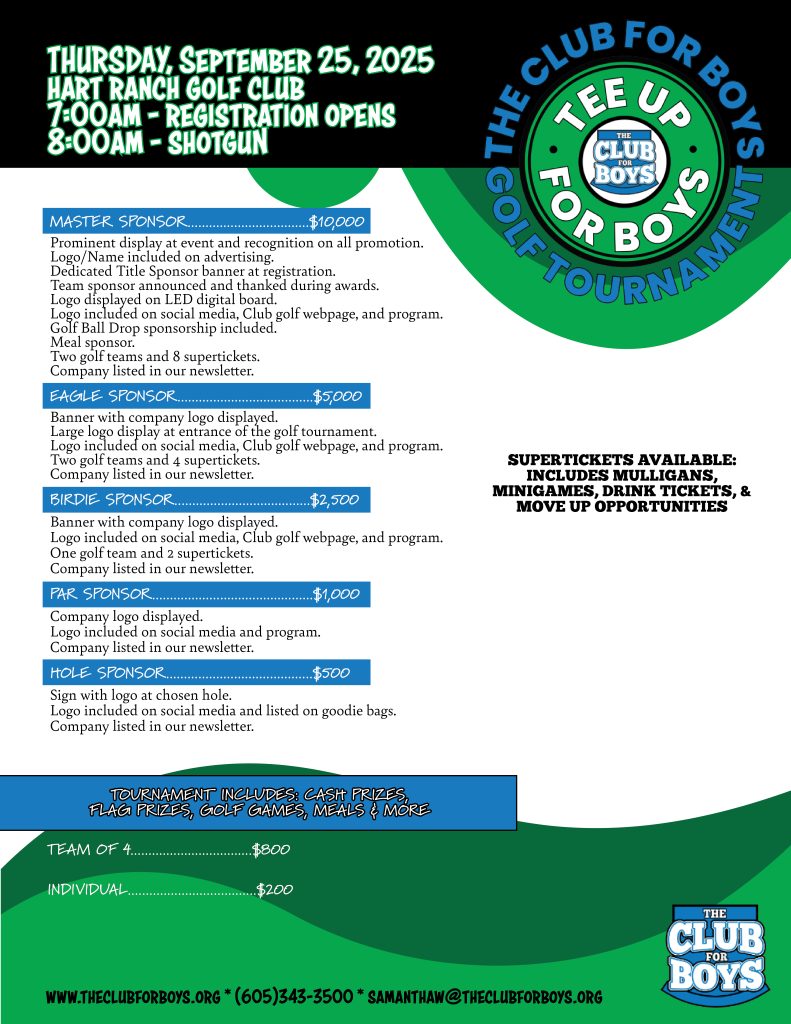 Support The Club for Boys in continuing to develop programs that address the needs in our community, and, more importantly, the needs of our members, by participating in our Golf Tournament.